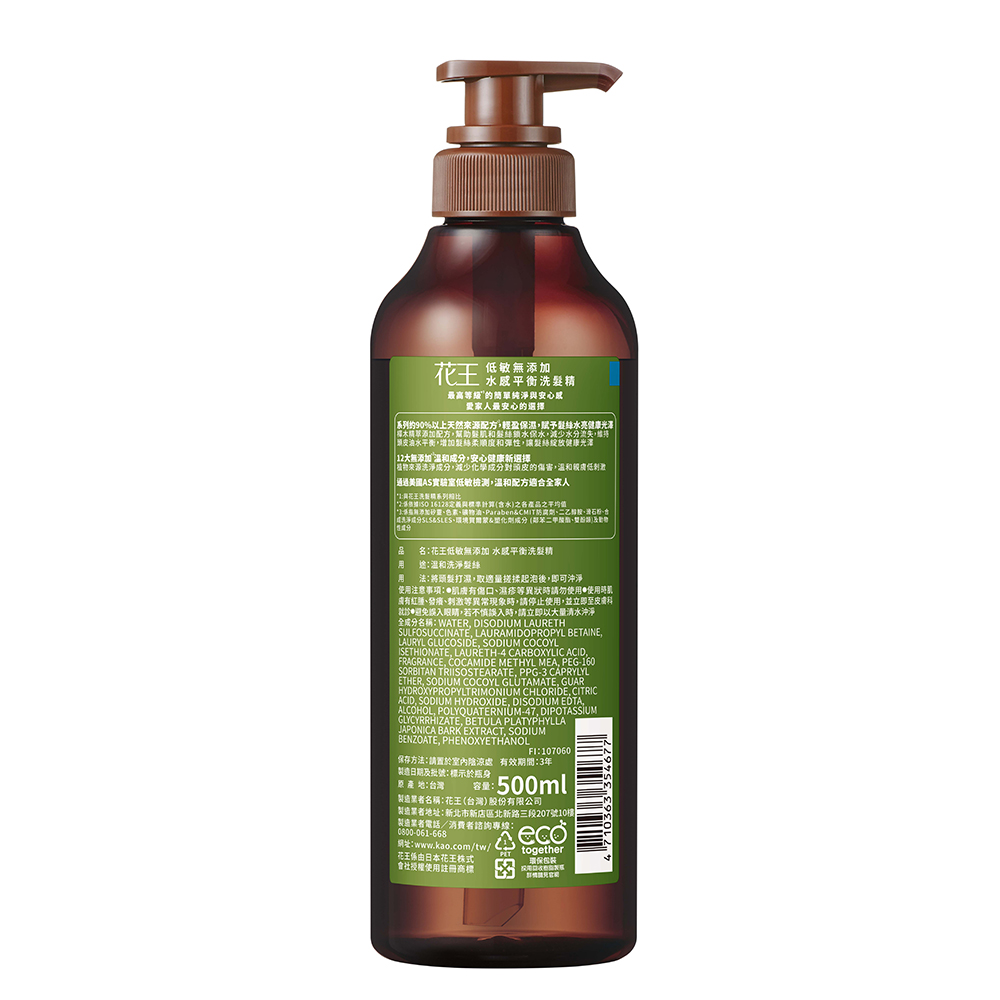 花王 低敏無添加水感平衡洗髮精500ml
