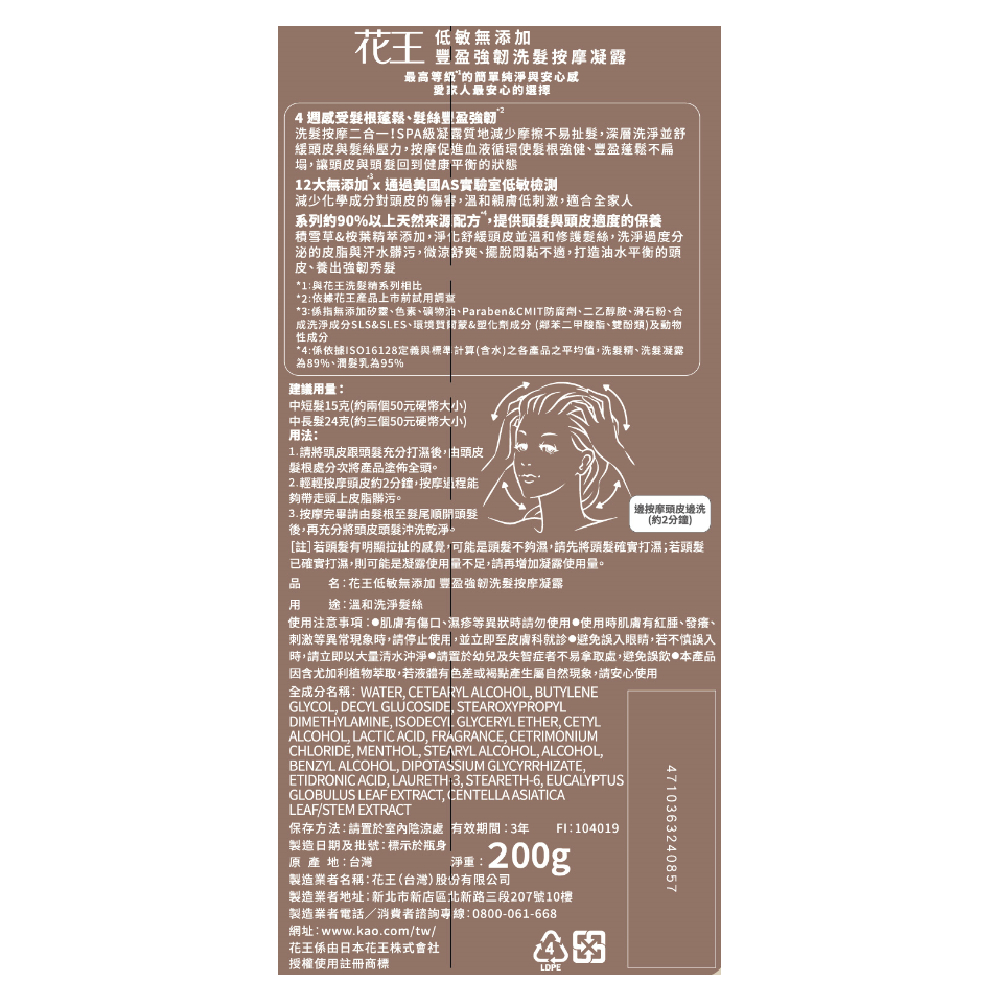 花王 低敏無添加豐盈強韌洗髮按摩凝露200g